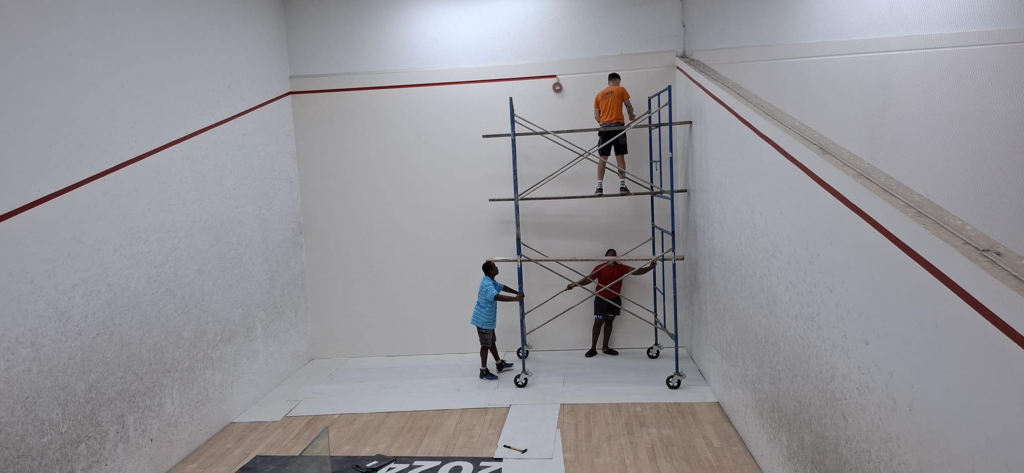 Situé au cœur de Port of Spain, à Trinité-et-Tobago, le Queen's Park Cricket Club (QPCC), fondé en 1891, est l'une des institutions sportives les plus anciennes et les plus prestigieuses des Caraïbes. Il est réputé pour sa riche histoire dans le domaine du cricket et pour son évolution vers un centre sportif multidisciplinaire. Principalement connu pour son impressionnant Queen's Park Oval, un terrain historique qui a accueilli d'innombrables matchs internationaux, le club dispose également d'autres installations. Le Racquet Centre du club compte quatre courts de squash aux normes internationales, conçus pour répondre aux besoins des joueurs de compétition et des amateurs. Cet été, ASB a été chargé de rénover les courts de squash afin de pouvoir accueillir des événements PSA haut de gamme. Notre équipe s'est rendue sur l'île et a installé des panneaux muraux ASB System40 ainsi que de nouvelles tôle d'aluminium réglables en hauteur, la méthode de rénovation éprouvée par ASB dans le monde entier, préservant le reste des courts afin de limiter l'impact et le temps d'indisponibilité des courts.